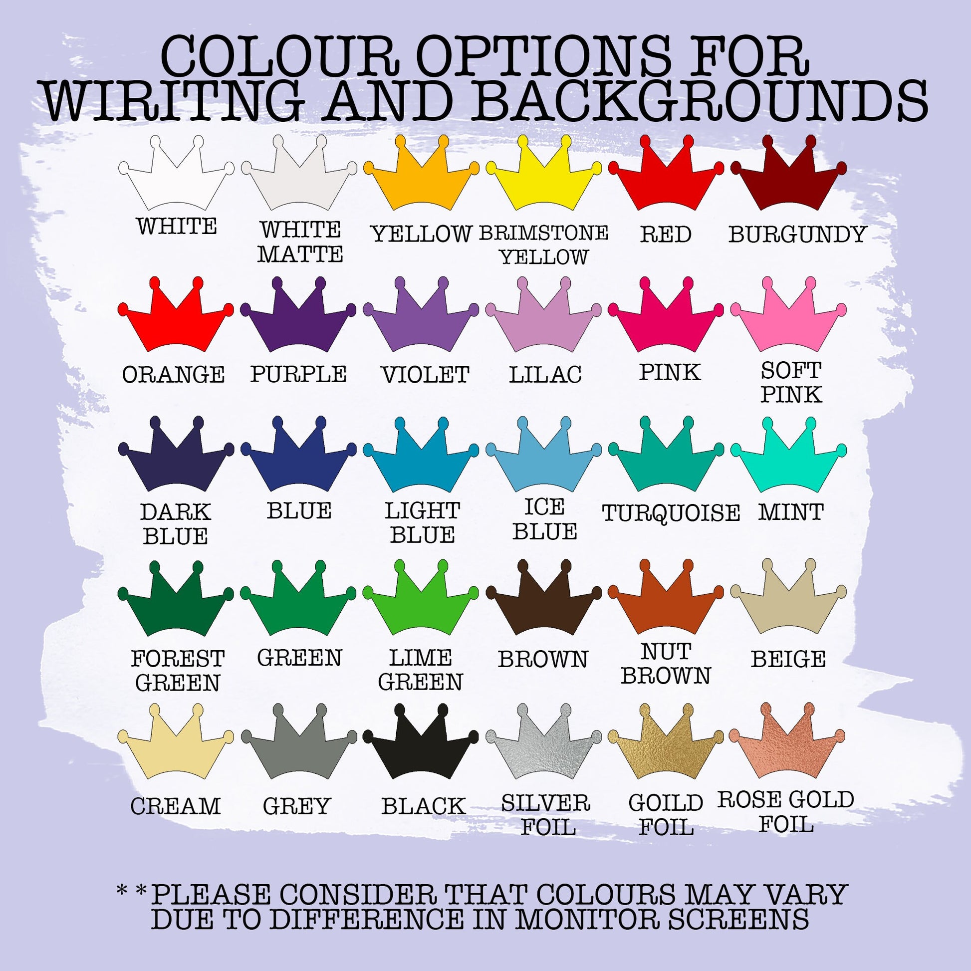 BRUSH STROKE: choose only if you wish a coloured brush stroke for the background (see options in pictures)